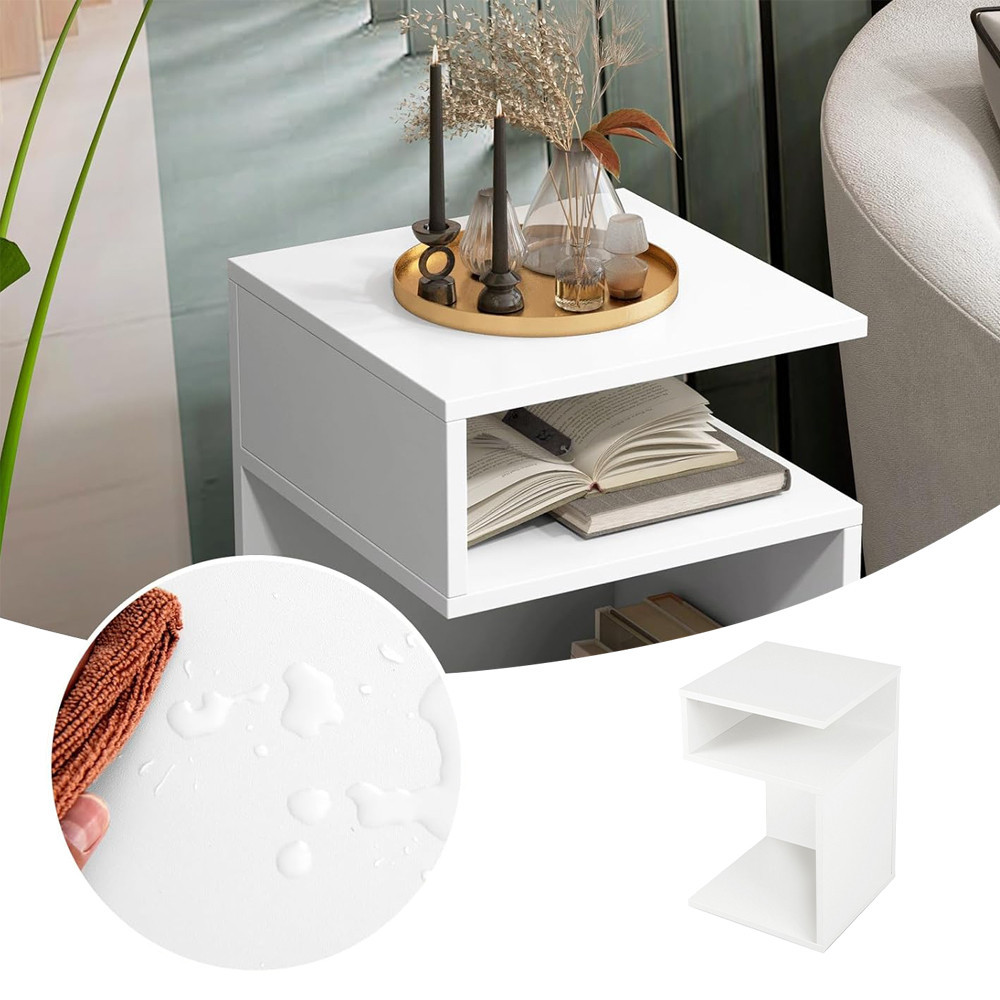 Il corpo realizzato in pannello di legno spesso offre un'eccellente capacità di carico, non si crepa e mantiene la sua stabilità nel tempo. La bordatura in PVC liscia previene graffi e protegge dai danni – inoltre, può essere facilmente pulita con un panno umido. Il piano del tavolo di 33 × 33 cm è ideale per posizionare fiori, lampade o decorazioni. I suoi due scomparti aperti sono perfetti per riviste, libri, telefoni o piccoli oggetti – mantenendo il tuo spazio ordinato e organizzato.