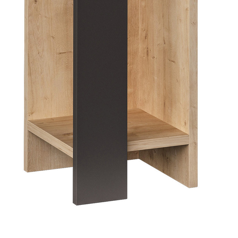 L'effetto rovere naturale e l'elemento antracite offrono un elegante contrasto nella stanza.