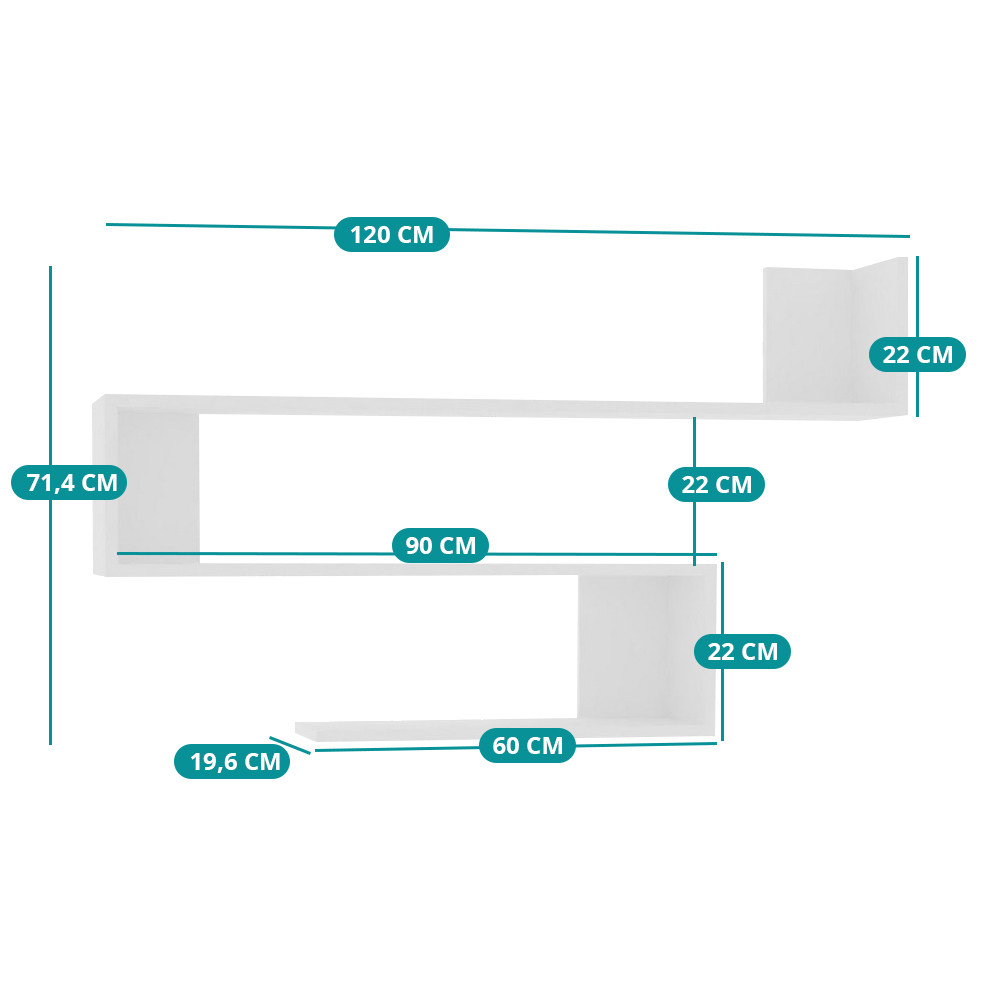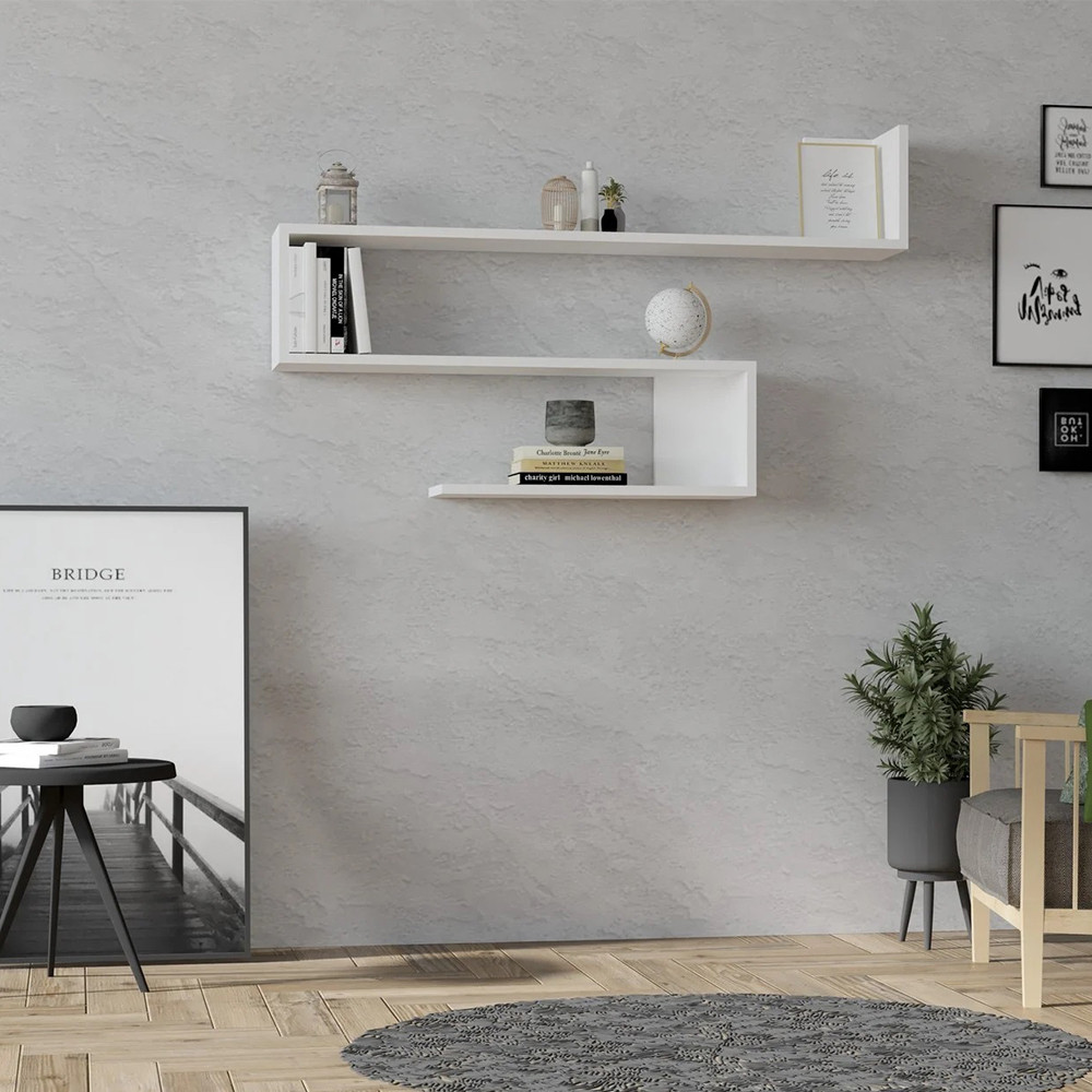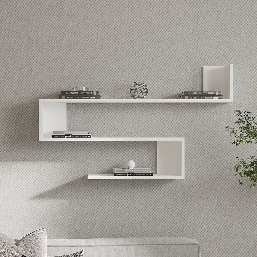 Il design flottante della mensola bianca offre un aspetto moderno e pulito. La sua forma geometrica funge da elemento decorativo, migliorando l'atmosfera del tuo soggiorno, camera da letto o ufficio domestico.