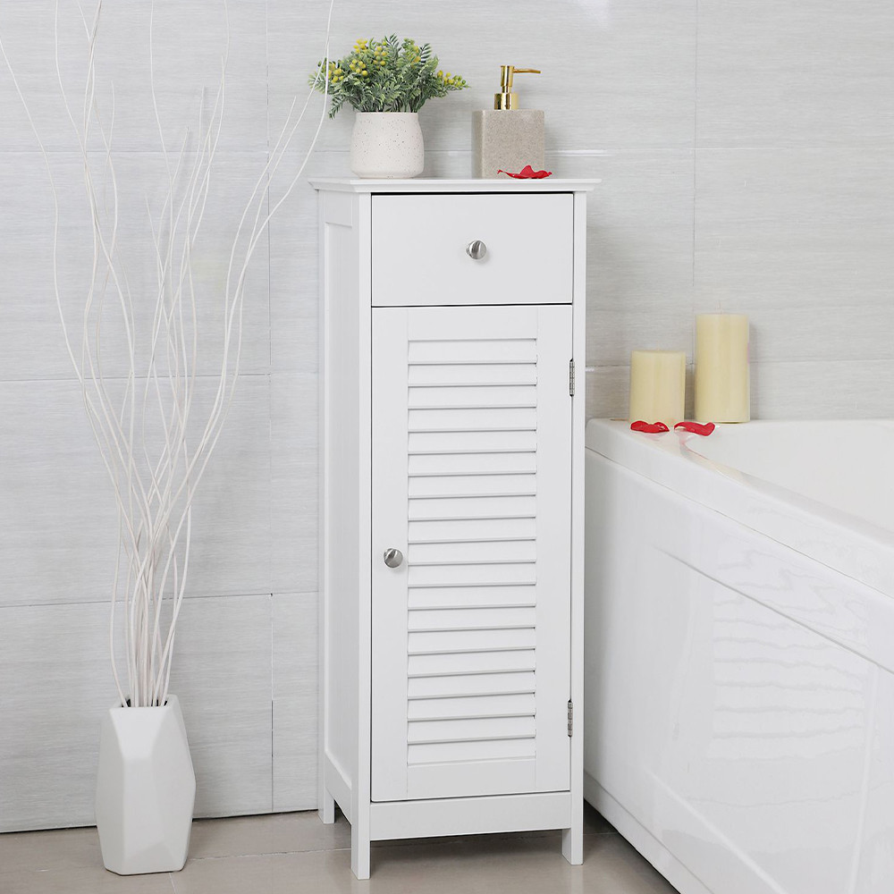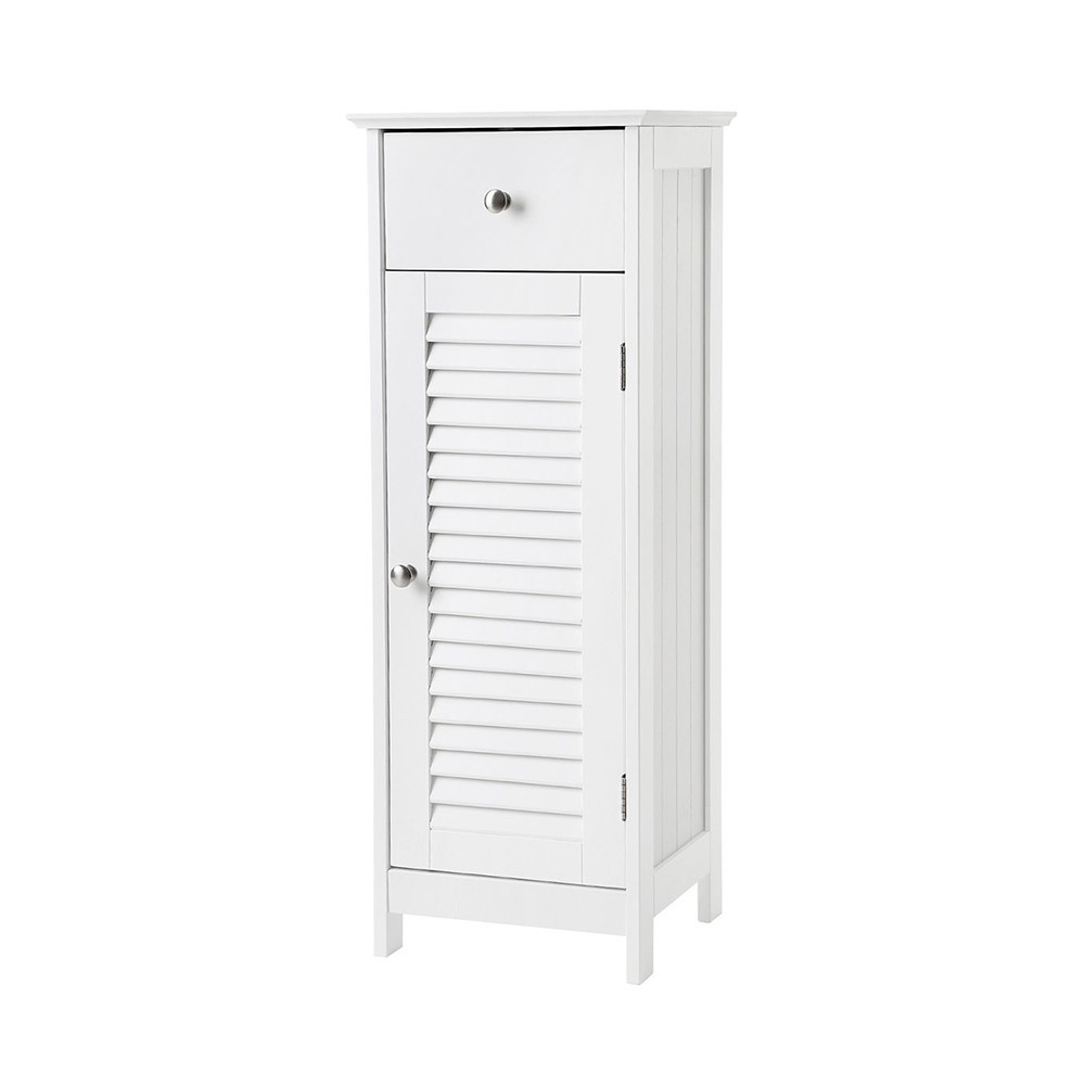 Il cassetto superiore è ideale per oggetti più piccoli, mentre i due ampi compartimenti dietro la porta offrono spazio per gli essenziali del bagno, della camera da letto o del soggiorno.