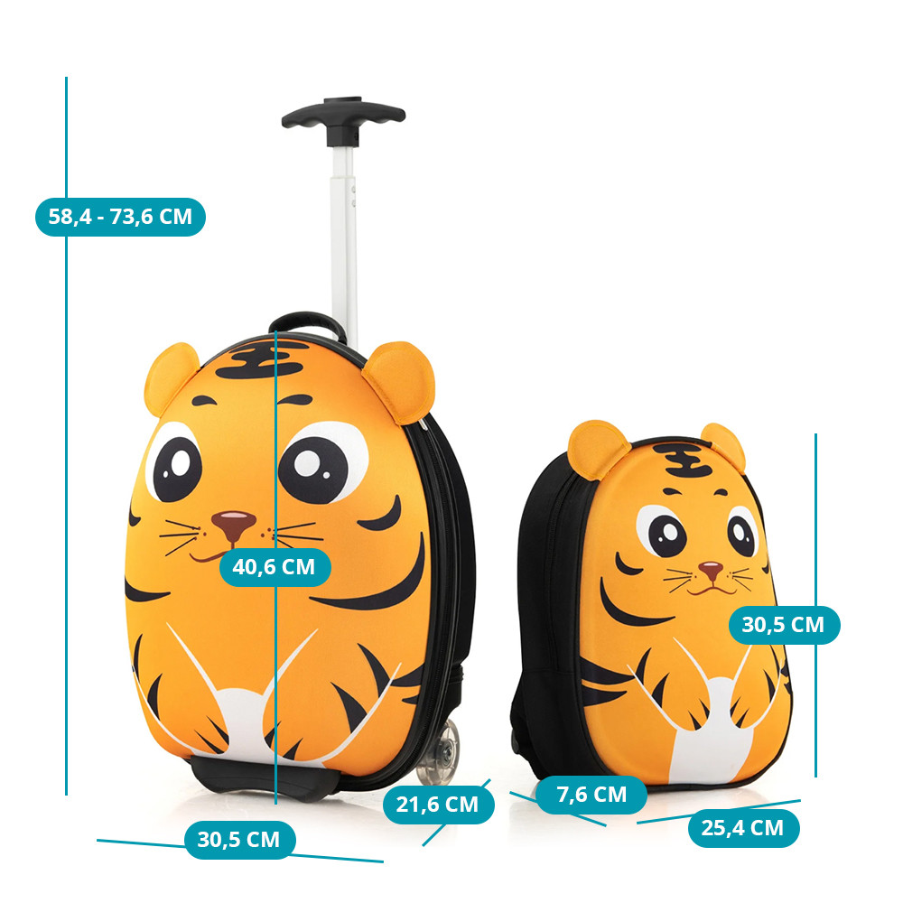 Questo set di valigia per bambini dall'aspetto allegro consente ai più piccoli di partecipare attivamente ai loro viaggi. La valigia con ruote e lo zaino abbinato sono compagni perfetti per uscite, vacanze o attività nel weekend.