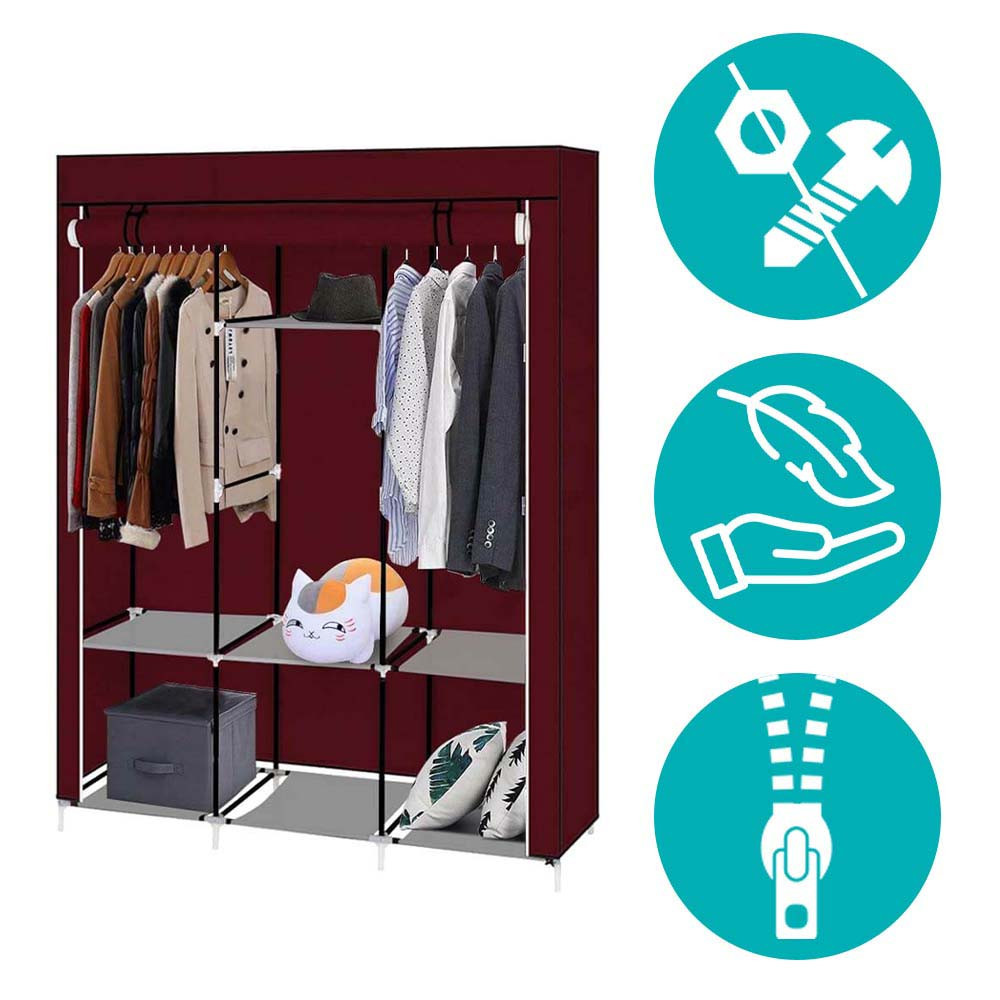 Stai cercando una soluzione di stoccaggio pratica e facilmente trasportabile? Questo armadio mobile è la scelta perfetta per la tua casa, la casa vacanze o anche per lo stoccaggio. Grazie alla sua struttura leggera, può essere facilmente spostato, mentre le porte con zip proteggono i tuoi vestiti dalla polvere e dallo sporco. Può essere assemblato senza alcun attrezzo, quindi puoi montarlo ovunque in pochi minuti!