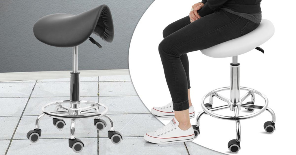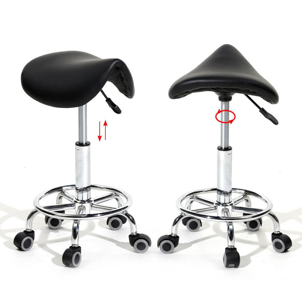 Sedia cosmetica ergonomica a sella con ruote - Altezza regolabile, pelle sintetica facile da pulire, nera
