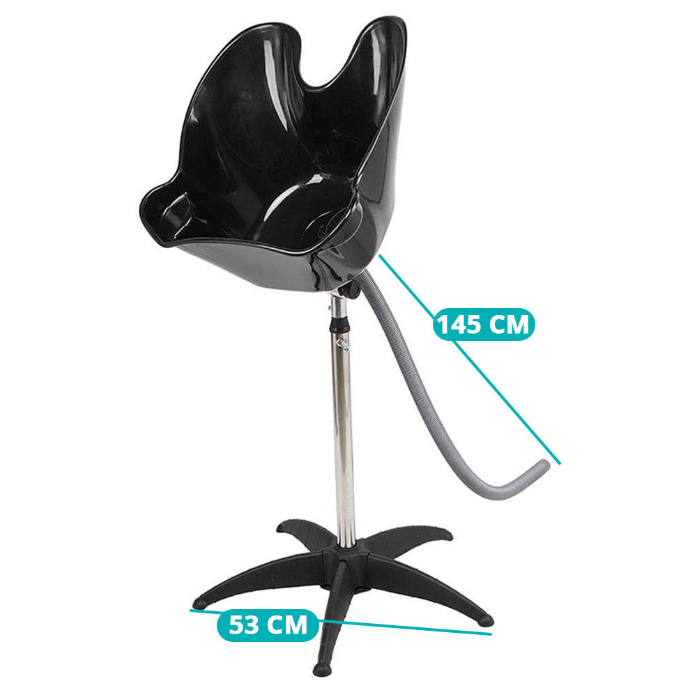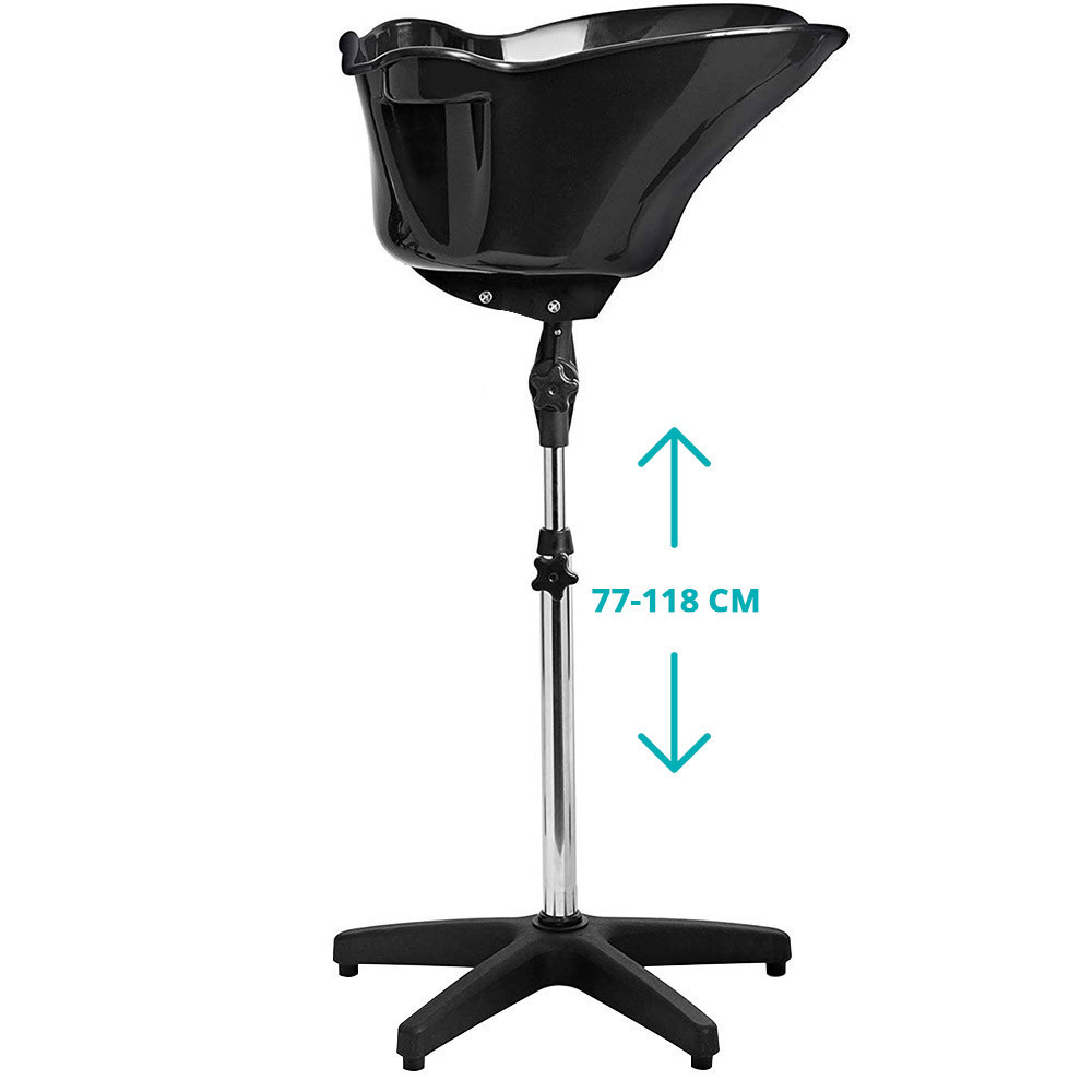 Il supporto per il lavaggio dei capelli è dotato di un bacino inclinato in plastica nera, che consente un lavaggio dei capelli confortevole per ospiti di diverse altezze. L'altezza regolabile tra 77-118 cm aumenta ulteriormente la flessibilità, rendendolo una soluzione ideale in ogni situazione.
