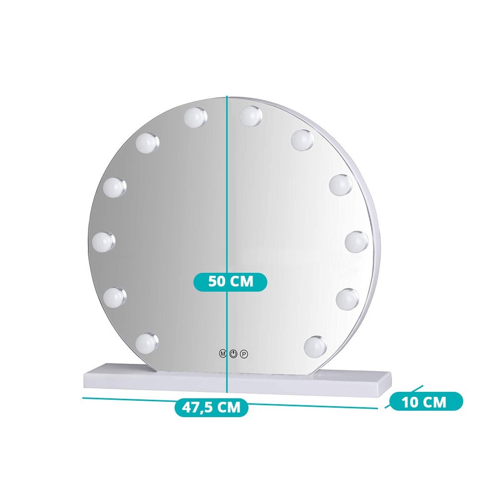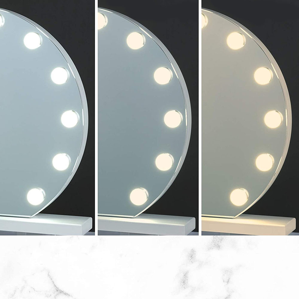Lo specchio è dotato di 12 lampadine LED che forniscono un'illuminazione uniforme con tre diverse tonalità di colore: luce diurna, bianco freddo e giallo caldo. L'interfaccia touchscreen ti consente di regolare facilmente la luminosità, in modo da adattare l'illuminazione al tuo ambiente e alle tue esigenze.