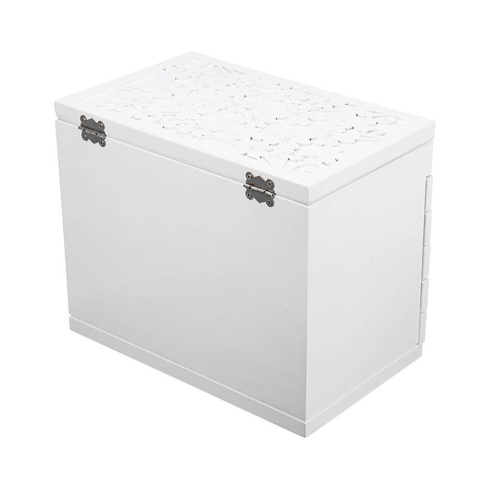 Grazie al suo colore bianco pulito e al design classico, questo organizzatore di gioielli si adatta facilmente a qualsiasi interno. Posizionato su un vanity, un comò o uno scaffale, funge non solo da soluzione di stoccaggio pratica ma anche da elemento decorativo.