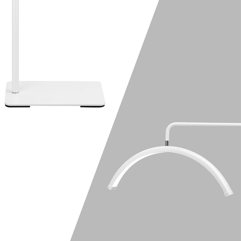 Grazie al suo design curvo, la lampada da terra a forma di mezzaluna Moon offre una luce uniforme e senza ombre, rendendola una scelta perfetta per trattamenti per la pelle, applicazione del trucco o altre procedure estetiche. Il comfort del cliente e la precisione del lavoro del professionista sono garantiti.
