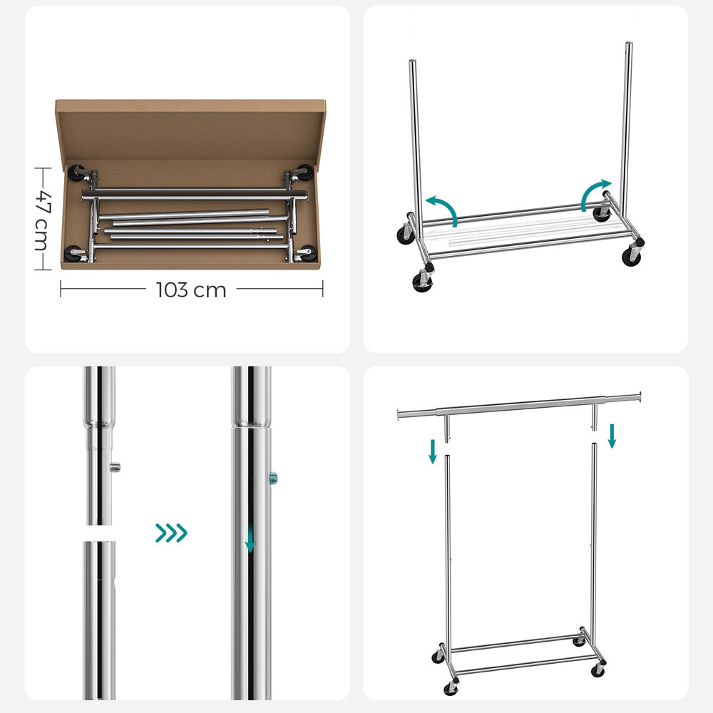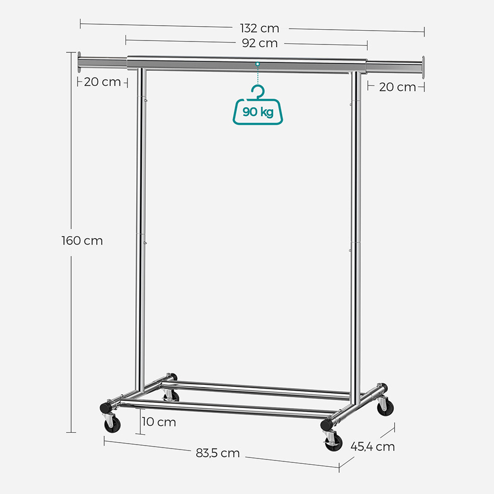 Questo robusto stendibiancheria con ruote è un'ottima scelta se desideri tenere in ordine cappotti, vestiti o anche borse. Che tu lo utilizzi in camera da letto, nell'armadio o nella lavanderia, sarà sempre lì quando ne hai bisogno.