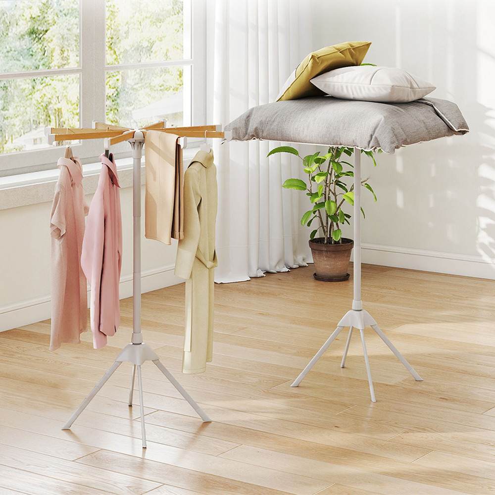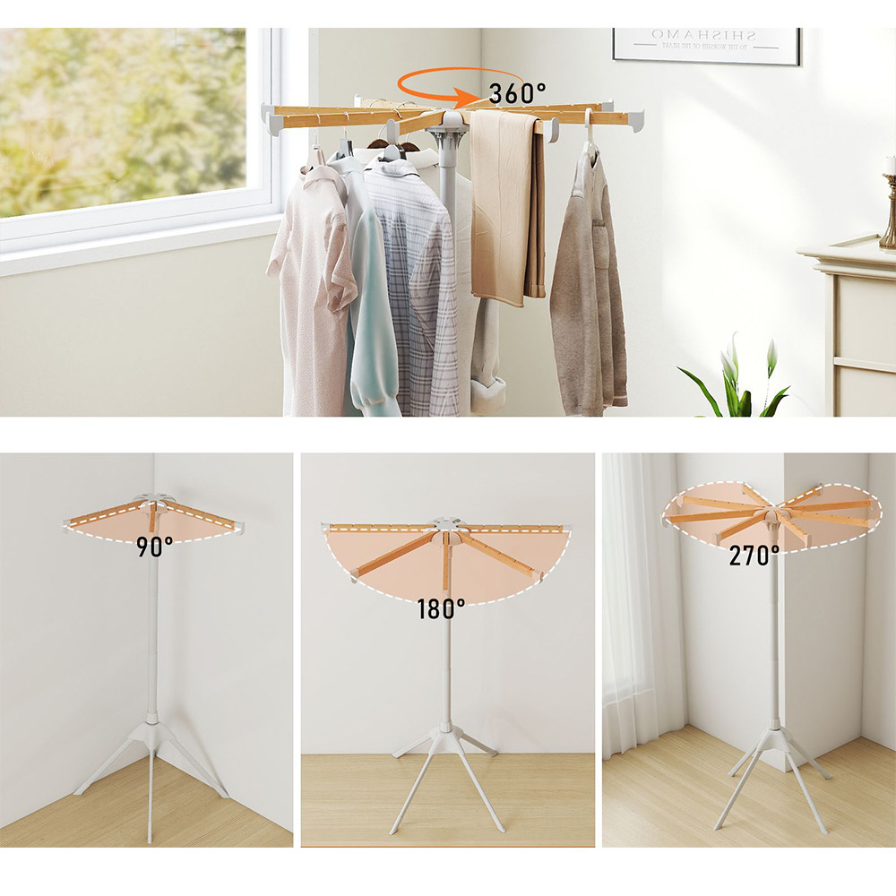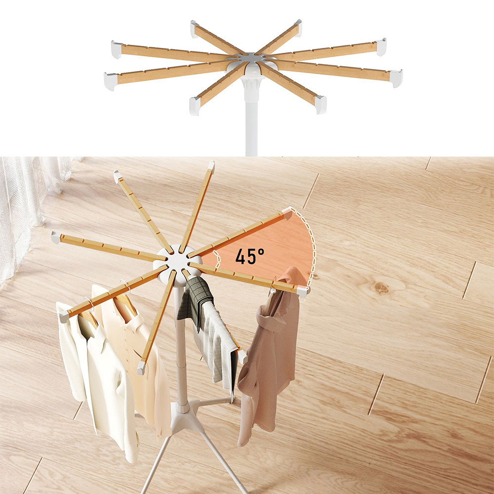 Le otto aste in bambù offrono un totale di 40 spazi per appendere, consentendo di asciugare contemporaneamente camicie, t-shirt, asciugamani o giacche leggere con una buona circolazione dell'aria.