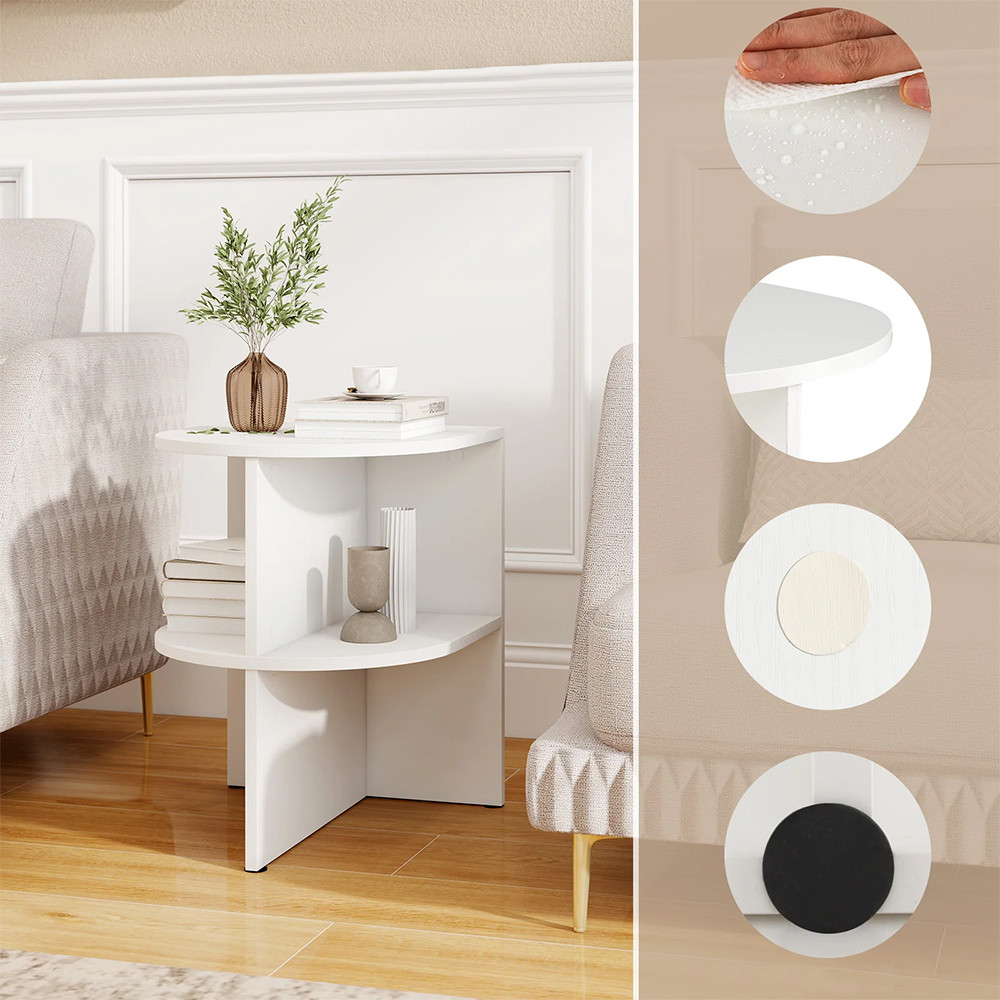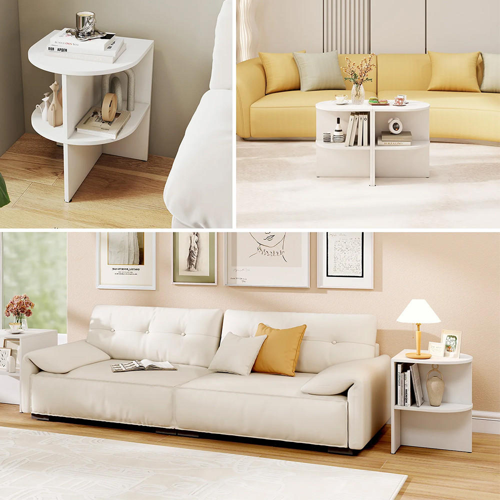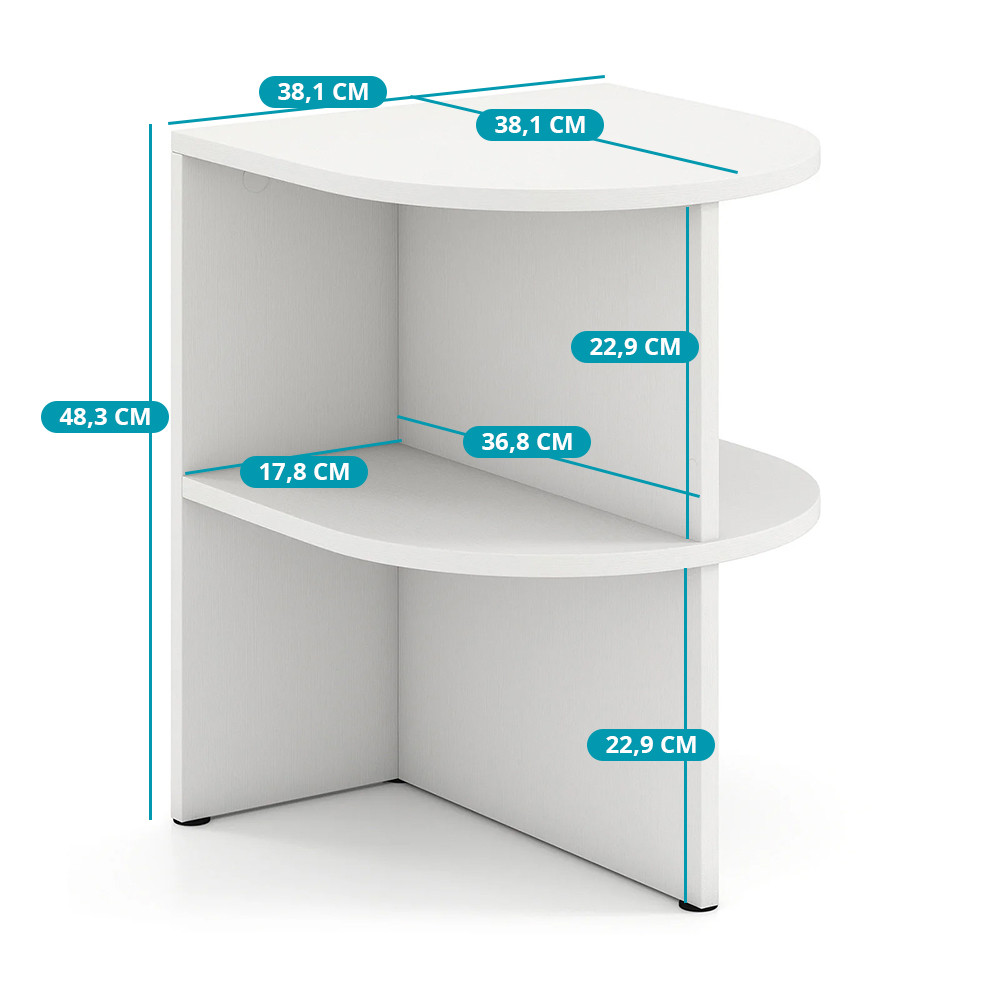 - Tavolino laterale semicircolare con ripiani aperti