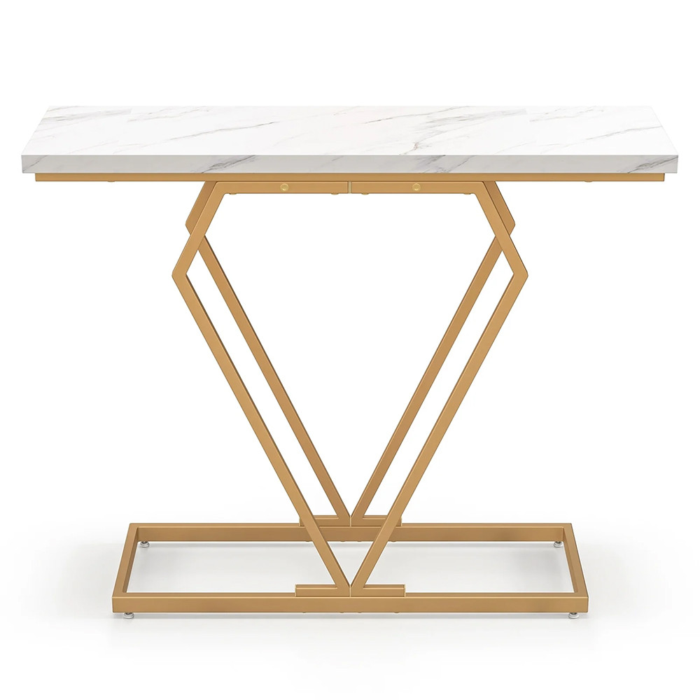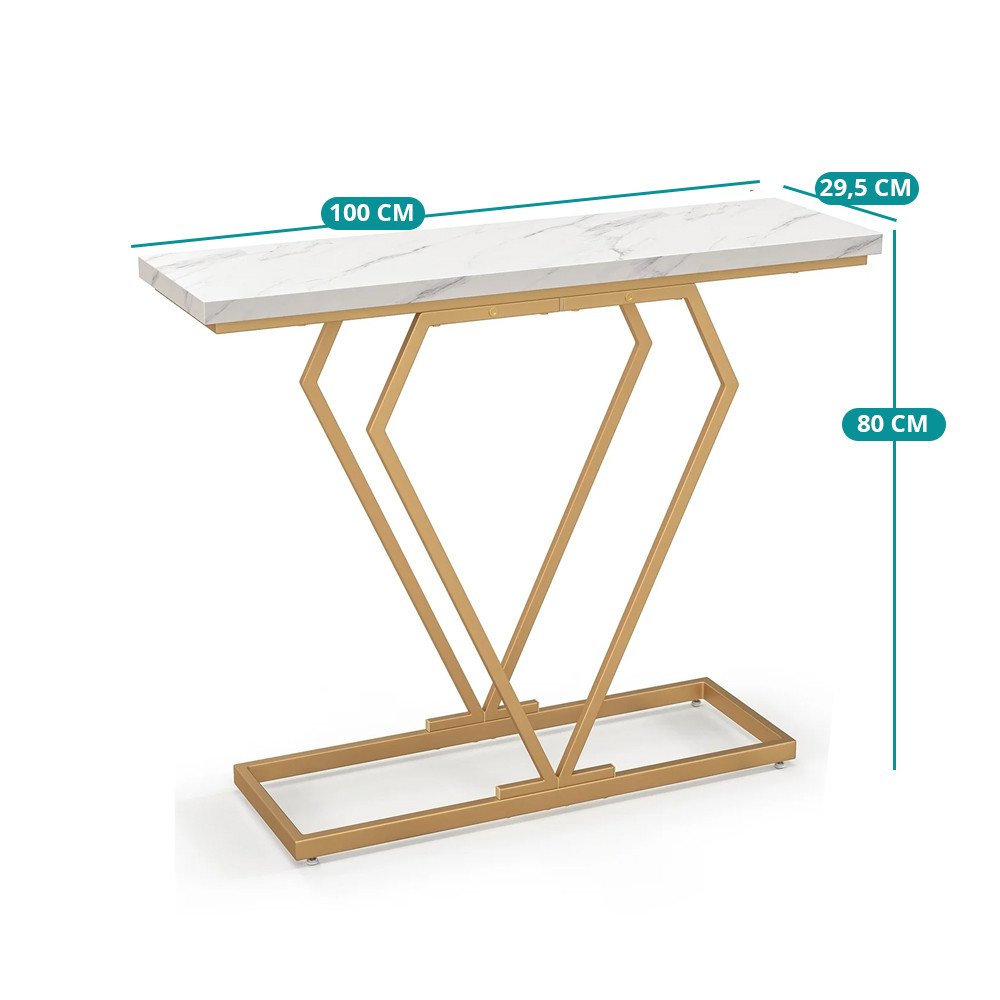 Il piano bianco con effetto marmo sintetico e la struttura in metallo color oro conferiscono un aspetto ordinato ed elegante. Si adatta bene a interni moderni, glam o minimalisti, valorizzando le decorazioni.