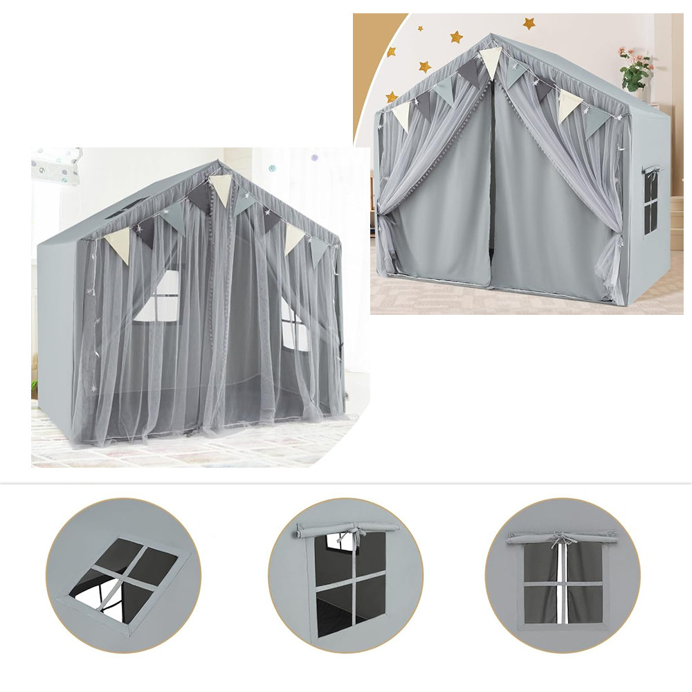 Le luci stellari e le bandierine colorate creano un'atmosfera amichevole e da favola che rende la tenda ancora più attraente. Le finestre in rete garantiscono una corretta ventilazione e una visibilità sicura.